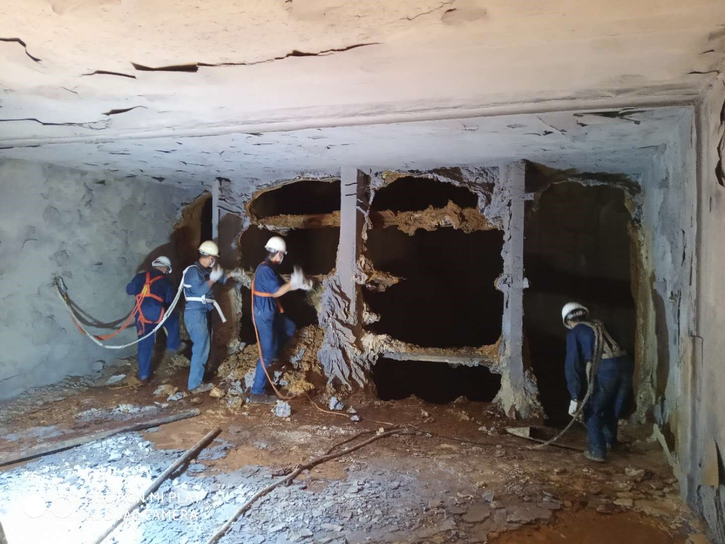 工作人員進塔清理煙道圖2