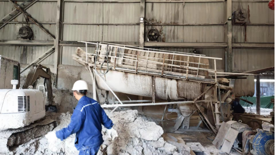 從9月17日起,西昌藍鼎開始每天安排休息班組人員加班,對脫硫灰進行二次利用。最開始采用水管沖洗化漿的方法,但是進度緩慢,化漿效果差。生產部經過研究,決定利用沙場淘沙的滾篩來加快速度,在同檢修溝通確定技改方案后,對新采購的滾篩進行了技改,技改后既保證了人員的安全,又大大的加快了工作進度。