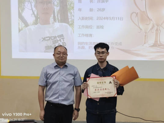 15:40,頒獎環(huán)節(jié)正式開始。首先頒發(fā)的是“最具潛力新人”獎項,由生產(chǎn)部副部長王建勇為莊濱宇頒獎。莊濱宇作為公司新生力量的代表,入職以來展現(xiàn)出極高的學(xué)習(xí)能力和工作熱情,迅速適應(yīng)崗位需求,在工作中不斷突破自我,為公司發(fā)展注入了新的活力。莊濱宇在發(fā)言中表示將保持學(xué)習(xí)熱情,繼續(xù)努力,為公司創(chuàng)造更多價值。